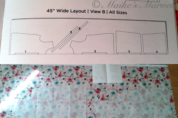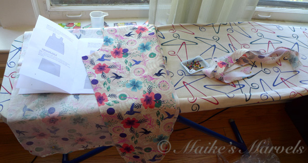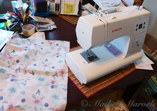 Because this fabric has birds flying in a specific direction, I already needed help in the cutting stage, not sure how to account for the direction of the fabric based on the layout in the booklet. I swung by Stitchworks with photos, and I was directed along the right path.