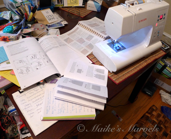 Then, I realized that it had been a long time since the workshop, and I forgot the steps to many sewing parts. So I consulted notes and a sewing manual to jog my memory.