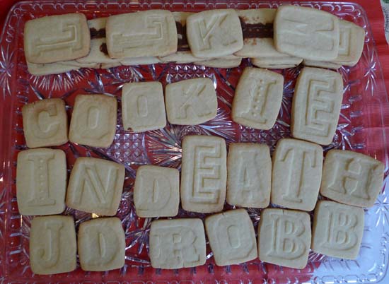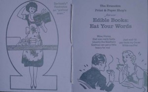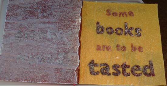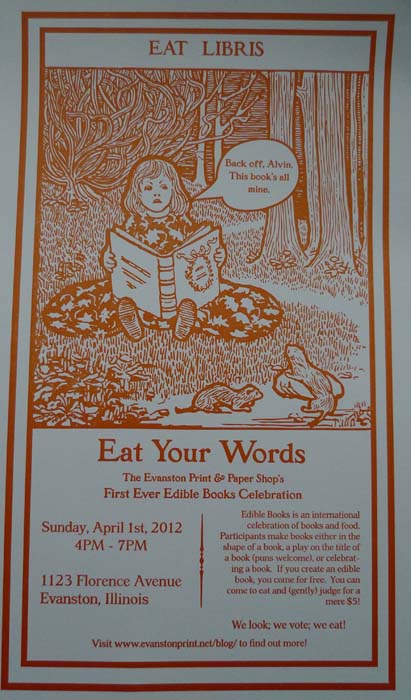 This worldwide observation made it to my home town yesterday. The Evanston Print and Paper Shop, which hosted my linocutting class last year, invited bookloving culinary creatives to enter edible goodies into a competition.