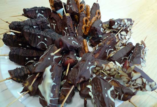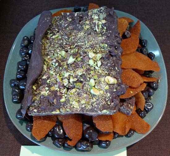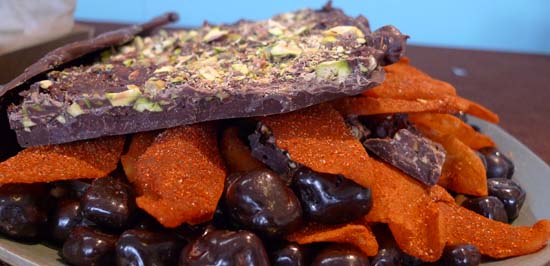 chili-dusted dried mango slices, dark chocolate crystallized ginger