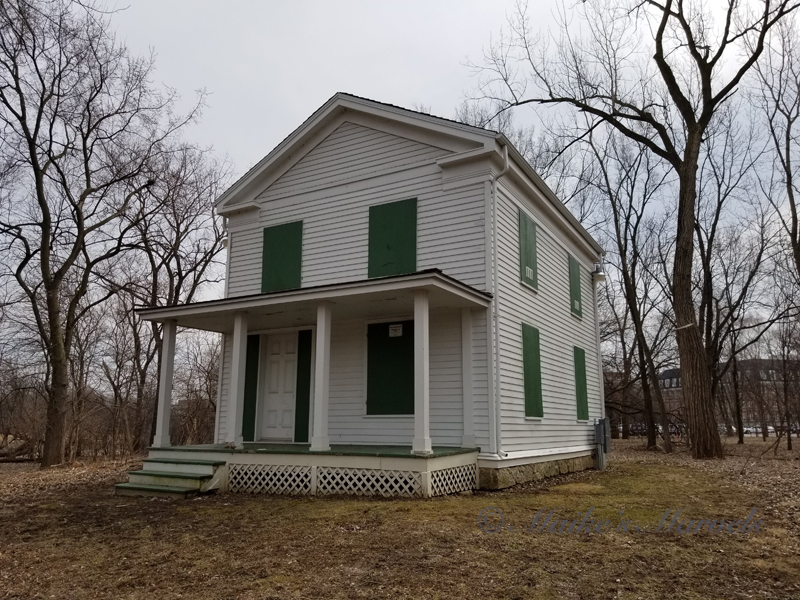 I wanted to find another trail to stretch my legs, and as I looked at the DuPage county map noticed Graue Mill, which intrigued me. A quick drive took me to Fullersburg Woods, where I parked in front of a historic building. The Benjamin Fuller house is apparently the oldest remaining example of balloon frame construction. This style was popular in 1830-1860, using using cheap, machine cut 2x4s rather than hand hewn timber.