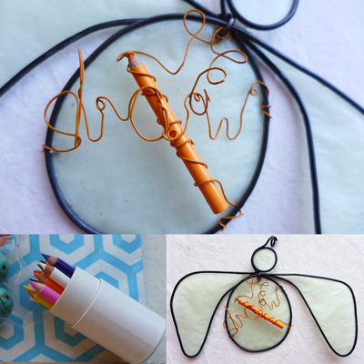 My draw angel is adorned with one of their tiny pencils.