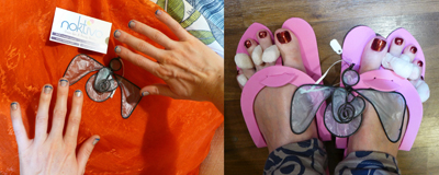 Noktivo pampers my hands and feet after all the wire bending and art fair loading and unloading. Jenny did this sparkly fresh manicure on a friend that I am in line for next.