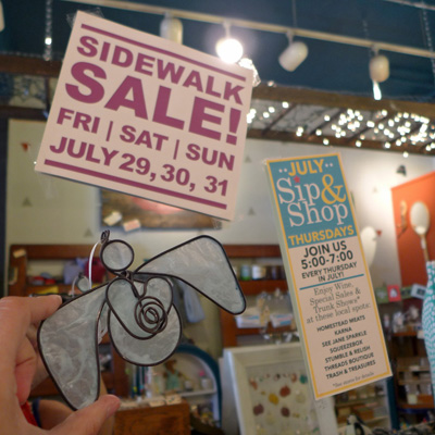 There will be discounts and special offers on apparel, shoes, one-of-a-kind accessories and decorative arts, including specialty and hand-crafted goods. Not all retailers will have items on the sidewalk per se but go inside to check out goodies.
