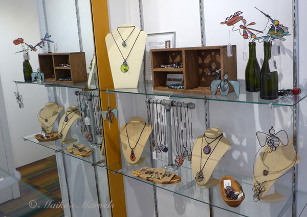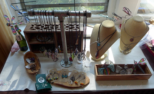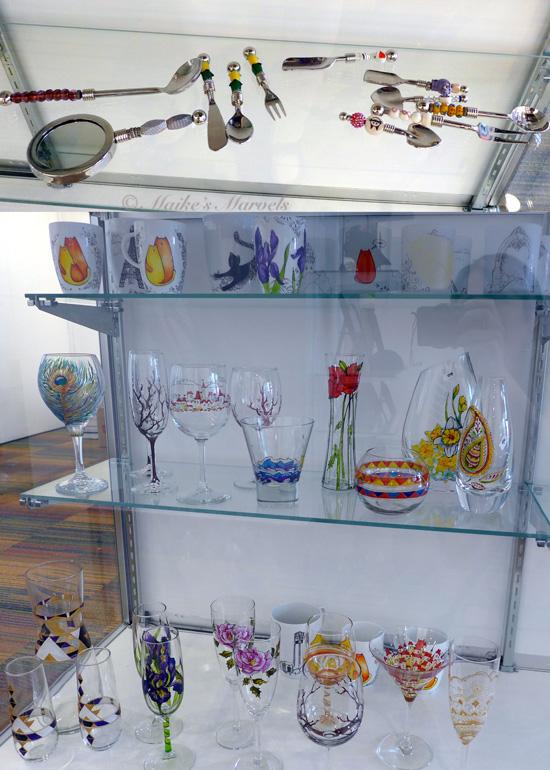 I also learned that Elektra and her husband will bring in their lampwork glass. Everlasting Fire Studio will bring in their beautiful wine glasses, marbles and paperweights, and some pendants. I use their vases for my trunk shows.