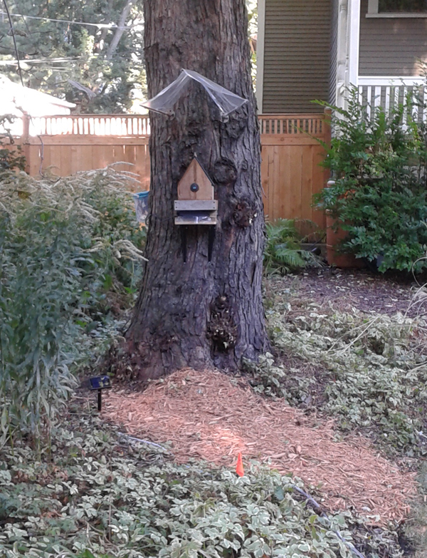 Near Ben’s installation was Laurie O’Brien‘s Dislocation, a birdhouse installation that held a miniature cinema. I felt like I would be trespassing to check out the piece closer, so I didn’t see the miniature film that is held inside.