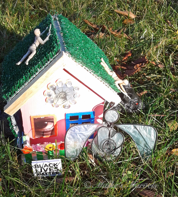I started with The Beloved Community by Ben Blount. His collaboration with 40 artists resulted in a miniature community with a small Black Lives Matter yard sign to demonstrate neighborhood unity.