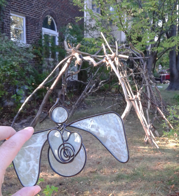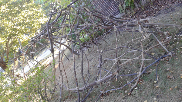On Lake street, I visited Kevin Valentine‘s The Structure of Memory. His structure of woven together branches is dedicated to the widows of Iraq. “The created space is for contemplation, remembering sacrifices made, representing the complexity and hollowness of life after conflict, but also for hope, rebuilding and peace. These found sticks and driftwood were used by participants in drawing symbolic lines in the sand in memory of and solidarity with the millions of uncounted widows from decades of strife in the Middle East. Each branch is dated and signed by participants who marked half-a-million lines in the beaches of Chicago, Evanston and elsewhere over several years.”