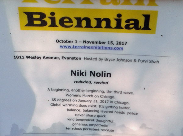 On a sign was a poem by Niki Nolin, who also has a video installation in the exhibit.