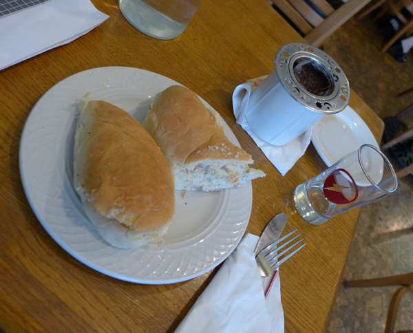 I ordered a tuna salad brioche with tea, which was served quickly.