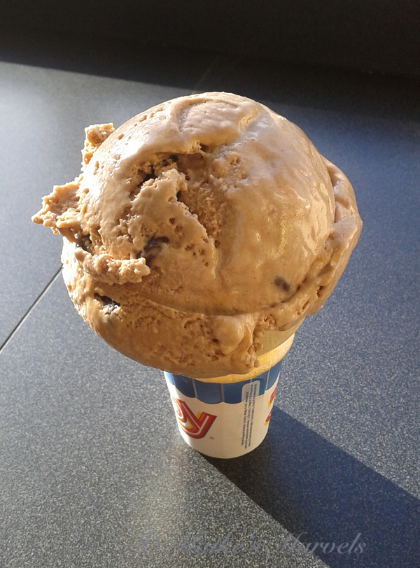 I meandered 2 fabric stores, some fashion boutiques, and then stumbled onto Kaleidoscoops via a gift shop, and couldn’t resist treating myself to a cone. This is a nice after-school hangout for teens. I needed caffeine for a long evening so “The Grind” was a perfect fix with its delicious caramel and the crunch of chocolate covered espresso beans inside.