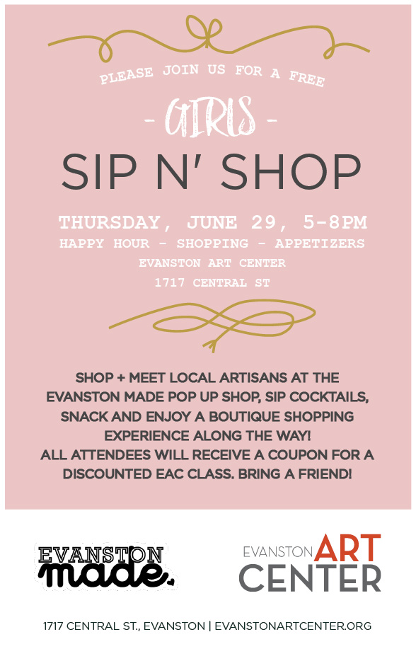 June has flown by, and this is the final week to see all the Evanston Made art on display at the Evanston Art Center. As of July 1, all this lovely art will be off to new owners or back to artists’ studios. To celebrate the success of this annual event, Evanston Made is hosting a Sip ‘n Shop party on Thursday, June 29 from 5 pm to 8 pm.
