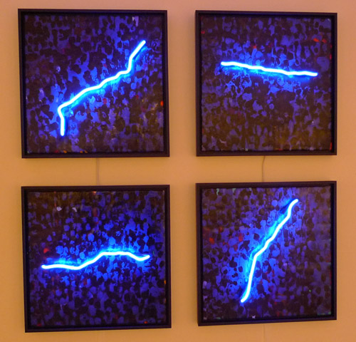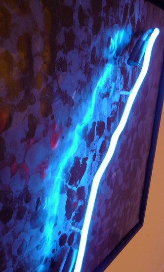 Mapquest 4, encaustic neon on panel by Kathleen Waterloo