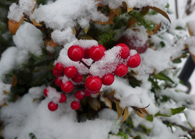 In the real world we are facing crunchy ice-capades with cars as the mounds create ice boulders that make parking an issue. Nonetheless, it still looks festive in some places.