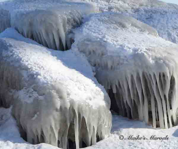 The deep freeze left its mark, and I enjoyed the ice sculptures of Lake Michigan on a balmy 30-degree walk.