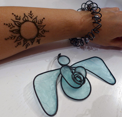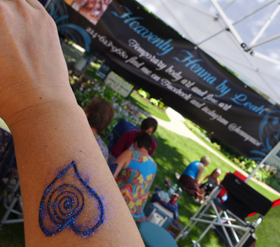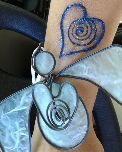 I thought of having Angel’s heart tattooed, and Leah McCloskey of Heavenly Henna by Leah was happy to do it. Her focus is on natural henna incorporating your prayer, wish, dream or intention. I love the added sparkle.