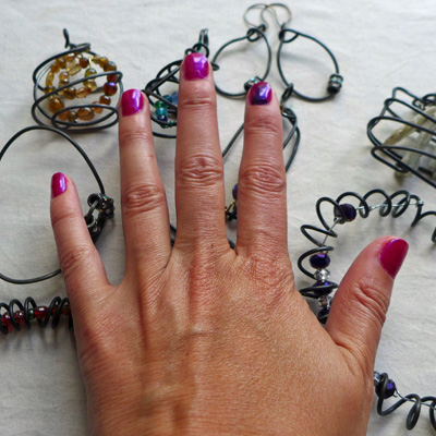 Sandy Sabo taught about grounding with copper and showcased her lovely spiral pendants. She also makes wonderful spoon fish wind chimes.