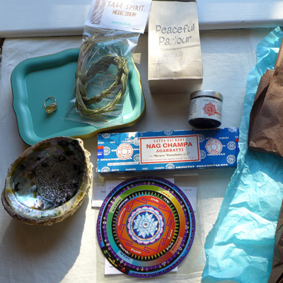 Prior to lunch I had a one-card reading with Rebecca Brown of Dreaming Girl Highway. I later sat down for a formal oracle card reading, and then learned about her blessing wheel.