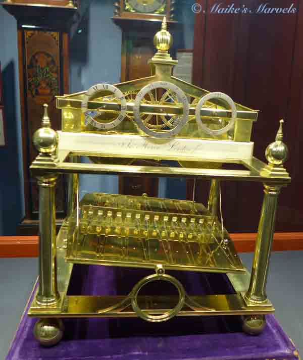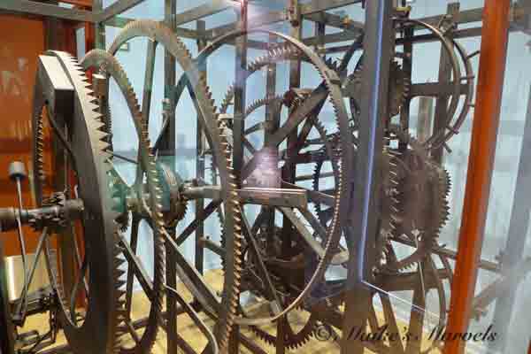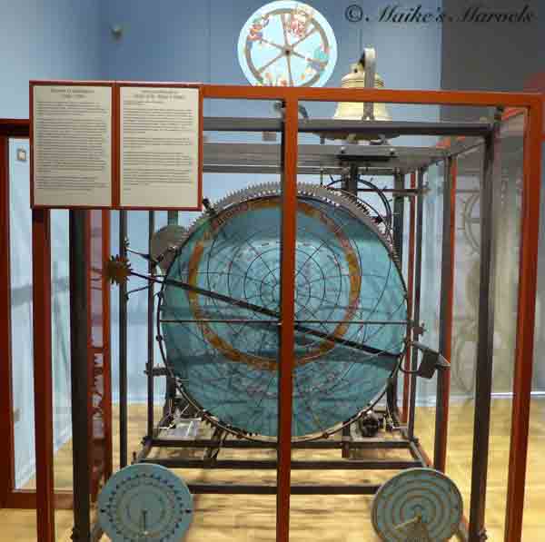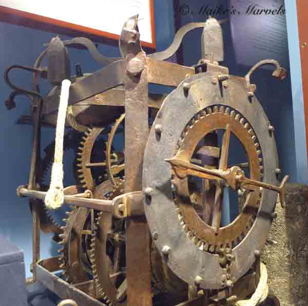 On my first visit to the Halim Museum I also strolled through the Clocks of the World. This exhibit starts with a reproduction of the oldest known clock, and impressive installation of gears attributed to Richard of Wallingford. He designed an astronomical clock,which was built approximately 20 years after his death.