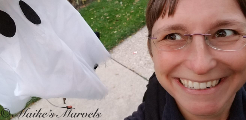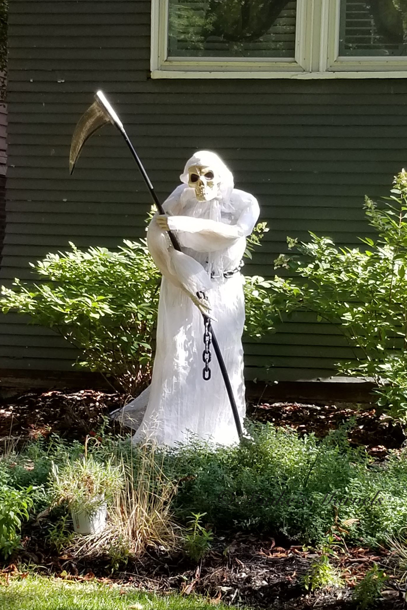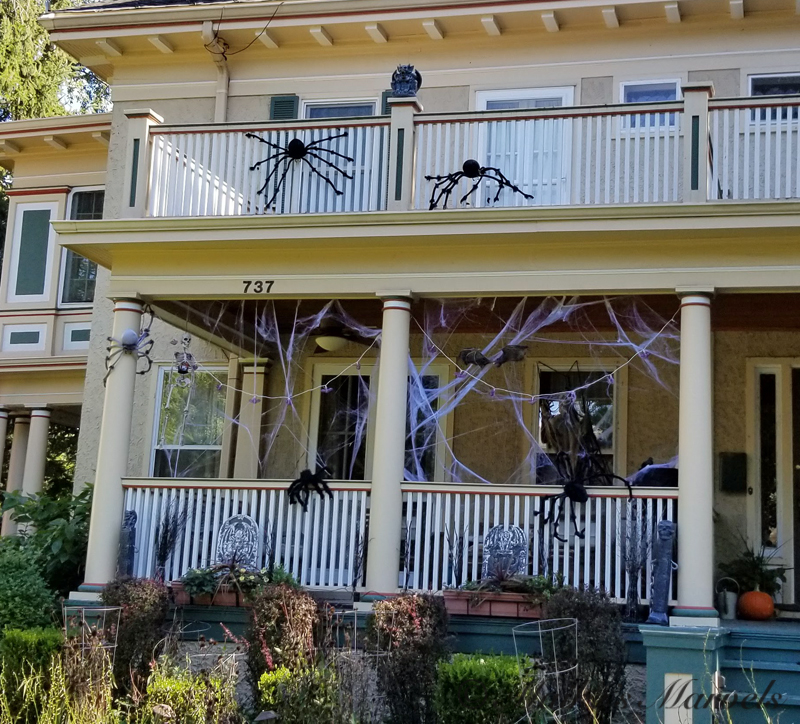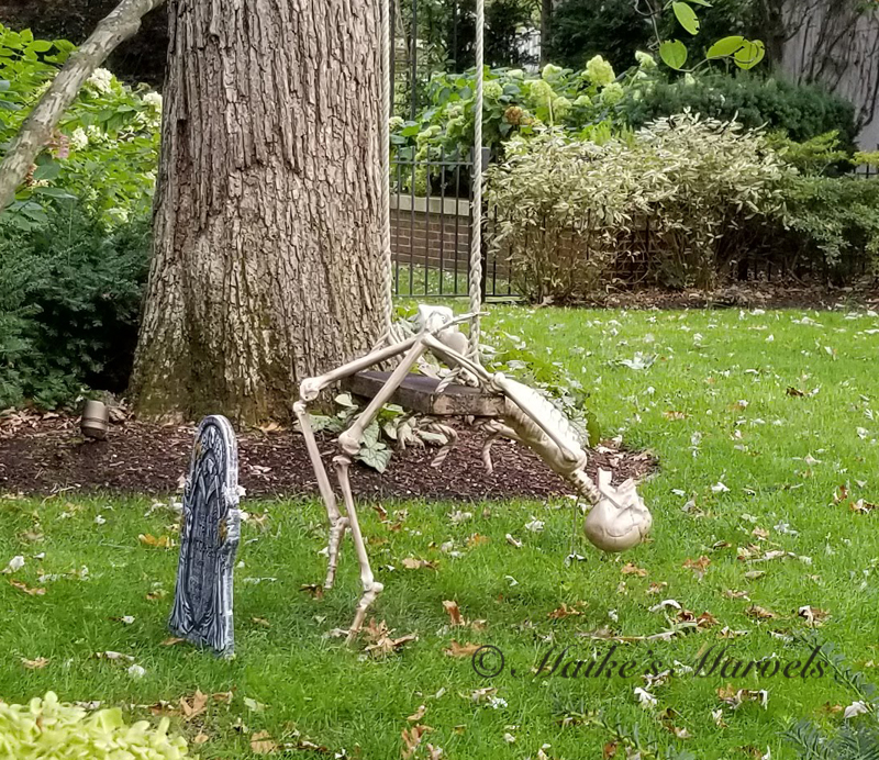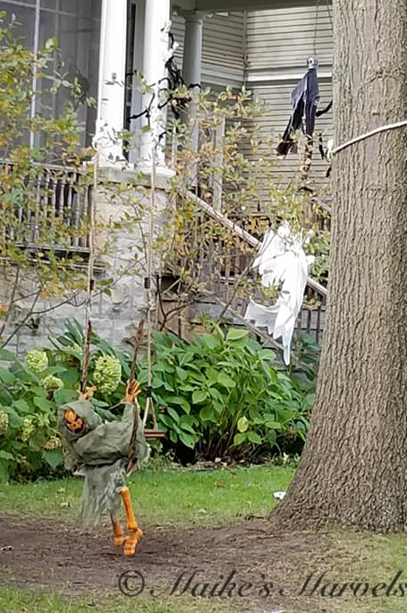 It is fun to take my daily walks right now. A lot of my neighbors are in the Halloween spirit, and have mostly fun decorations up.