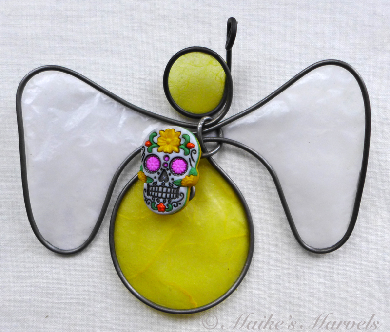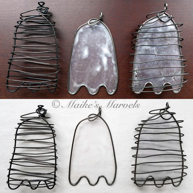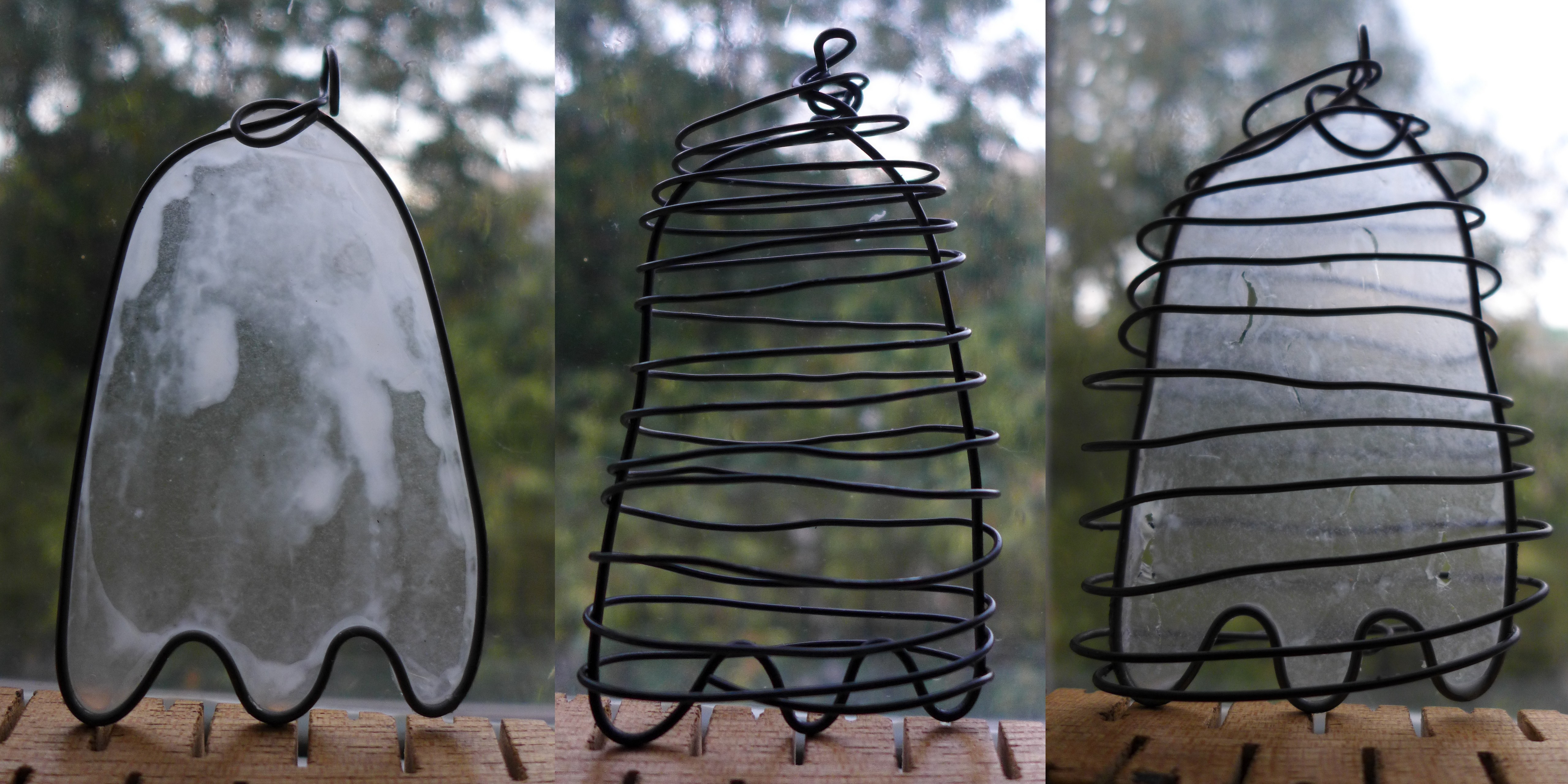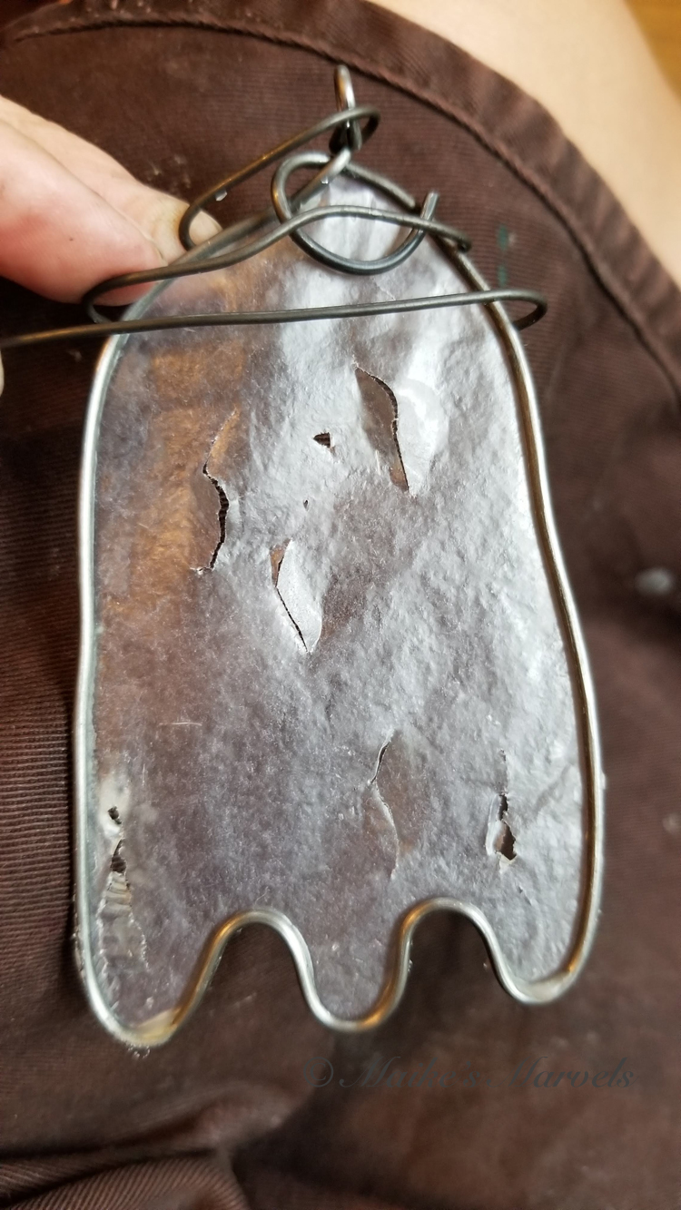 Then I wrapped wire around two of the ghost shapes, like I did for my Spiral Goddess. I really like this effect.