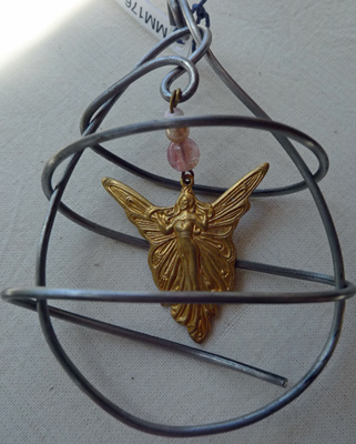 Since the white butterfly ball got snapped up I replenished it with the caged wire-wrapped Pink Balled Butterfly pendant.