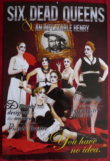 This week I get to see the Six Dead Queens and an Inflatable Henry show again at Piccolo Theatre.
