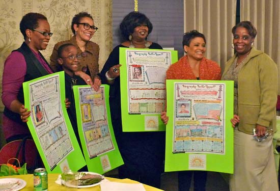 Four fourth grade children of Turner Drew Chicago Public School had created posters about our panelists for their Black History Month project, and other posters lined the walls.