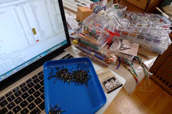 126 spreadsheet lines later I can account for 10,100 beads!  They’re all in this drawer.