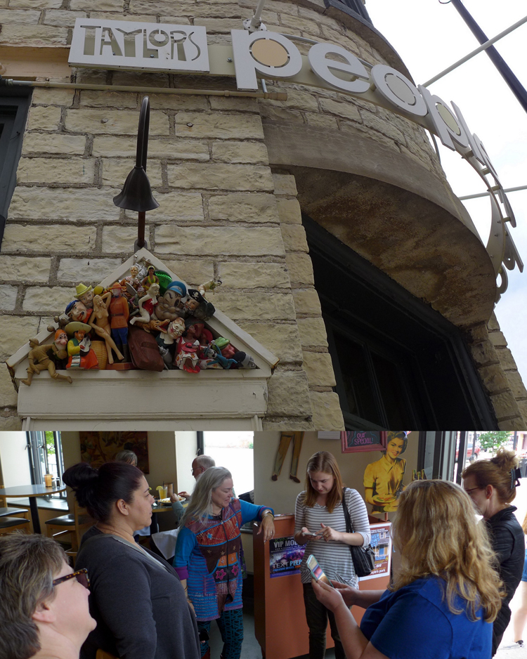 Our challenge was to use the template for various techniques, first following the instructions, and then adding our own interpretation of the technique by changing the Now That’s a Jig! Setup into our own design. We finished just as our stomachs started rumbling, and were treated to a lovely lunch in downtown Waukesha.