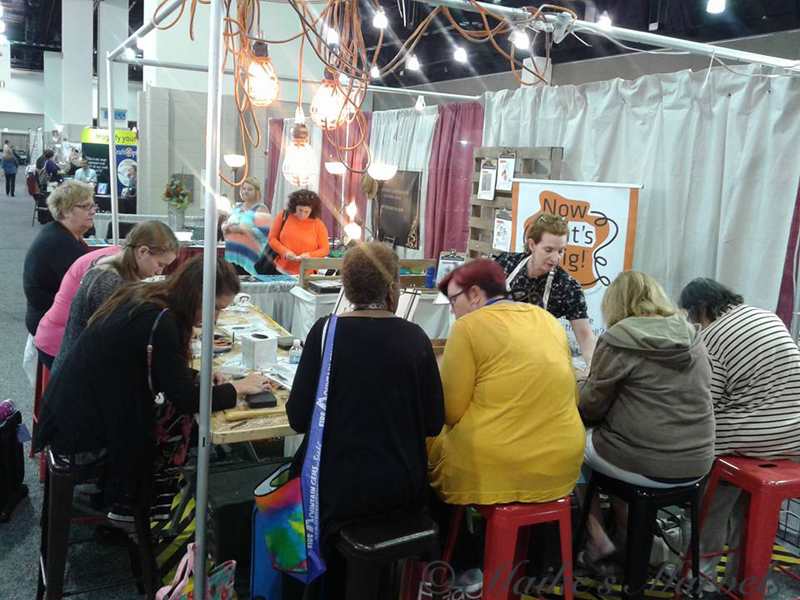 On Friday I worked the booth with Brenda and other JigUFacturers. The variety of classes drew a crowd and toward 4 pm we had a full house of ladies needing to sit down from all their shopping.