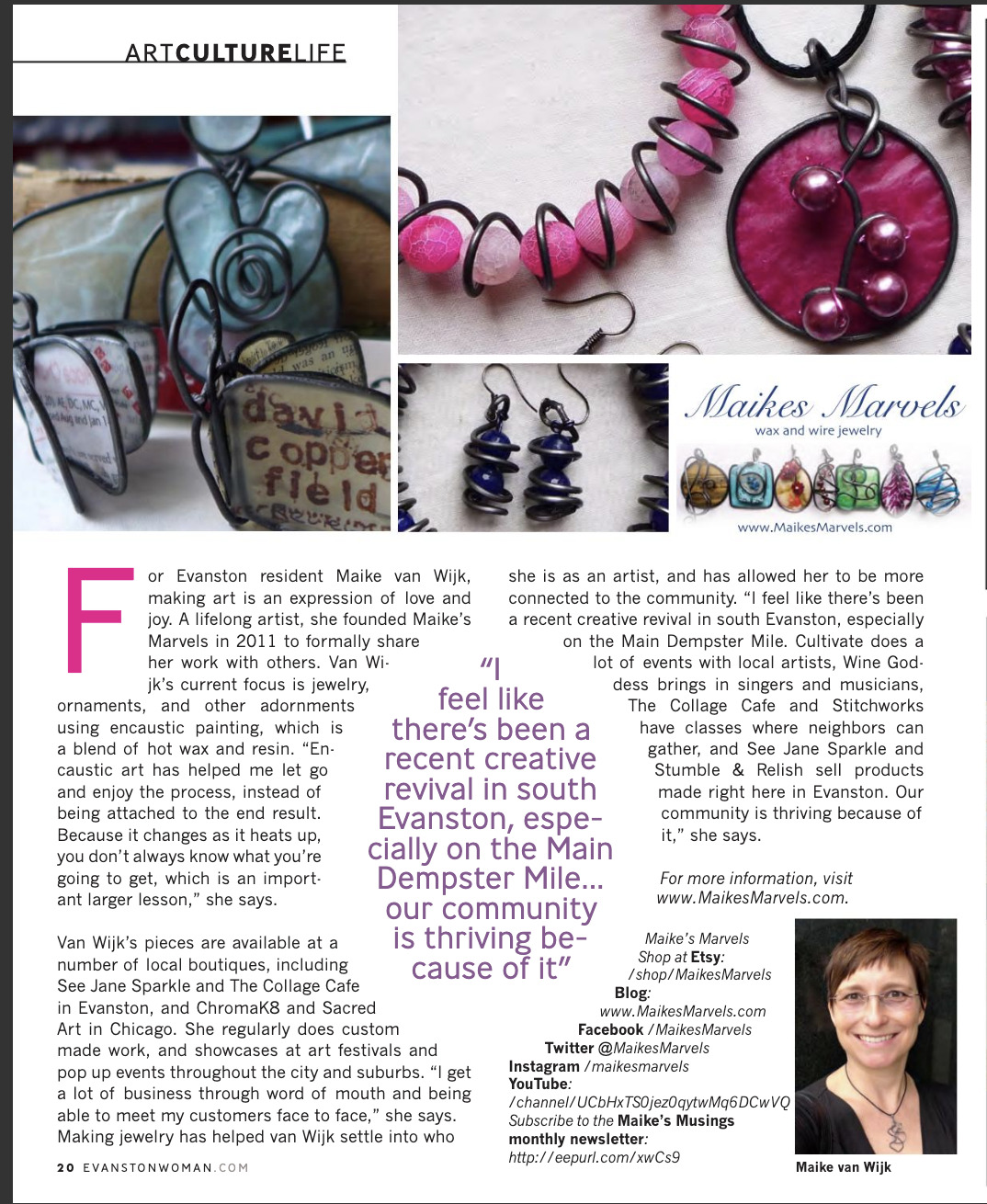 Carrie Jackson interviewed me for the January 2017 issue of Evanston Woman Magazine (pg 22).