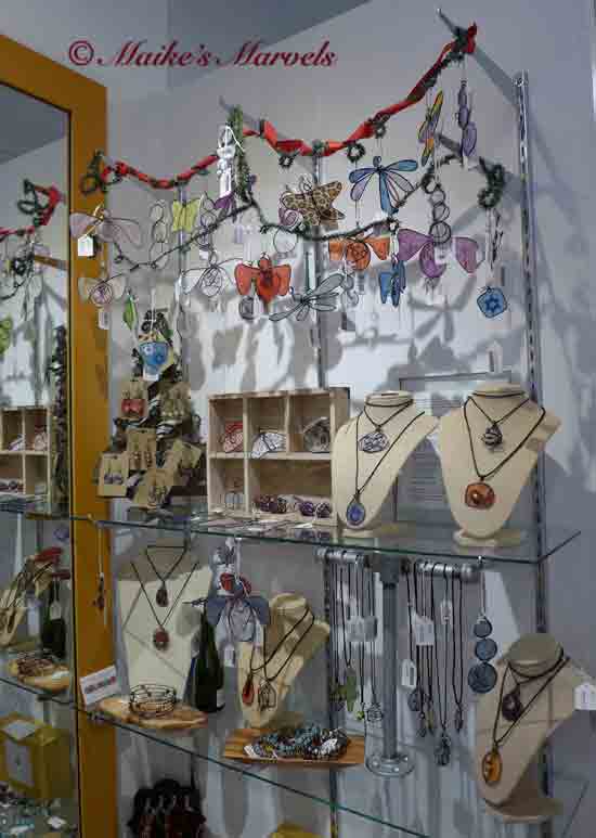 I was going to sneak my Jewelry bag and ornament boxes into the back room so you can peruse my Facebook album in person. However, I’ll be able to set up a small table with my wares in the store, so it will be a true trunk show. 🙂