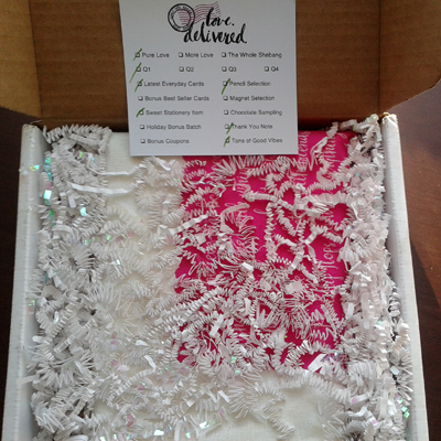 Each quarter, the wonderful people at Curly Girl Design pack up their latest releases, boxed sets of cards and other odds and ends to cheer the recipient up.