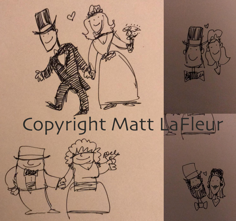 However, with so many of my friends being part of the LGBTQ community, I felt the hetero bias of my ornaments needed a reality check. I thought about drawing stick figures myself, but with the holiday season in full swing I decided to outsource this task, since I have so many fabulous illustrator friends. Matt was the first I contacted, and after a few back and forth messages, he came up with some concepts.
