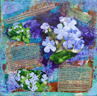 Then it was time to layer on the encaustic paint. Forget-Me-Nots are named for mouse’s ears (Myosotis), such a cute notion!
