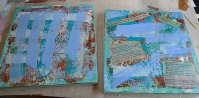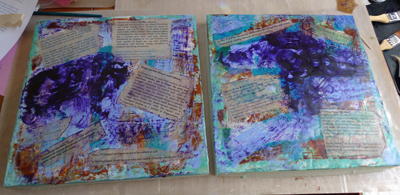 I had an unfinished diptych laying around so I pulled those cradled boards out and started color-coordinating.