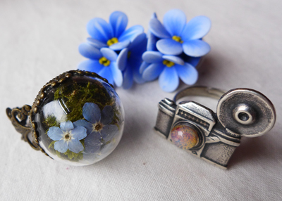 Meanwhile, I was gifted with some forget-me-not jewelry for my birthday from my treasury.