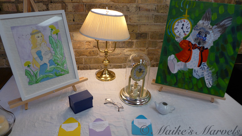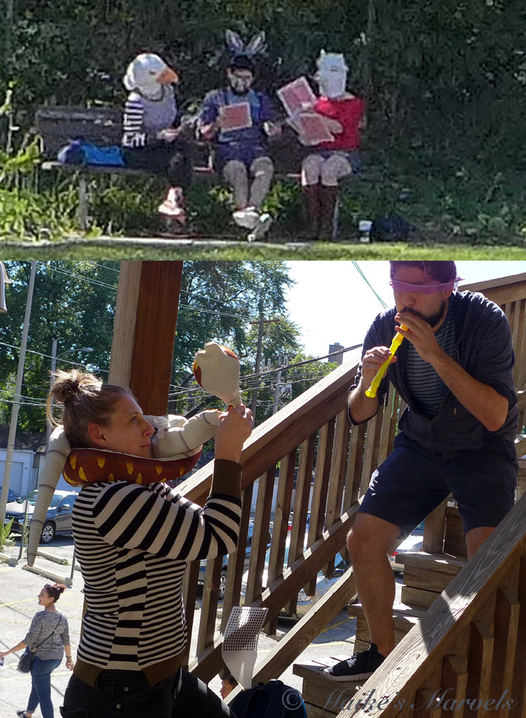 Alice performances are from September 22 to October 21, 2018 Saturdays and Sundays beginning at 1:00pm (tours leave in 15-minute intervals). All tours leave from August LaCapra State Farm, 829 Chicago Avenue, which is where my rabbit hole is located. Regular tickets are: $25 / $17 for students with ID. I got to visit my rabbit hole, and admire art by local acquaintances.