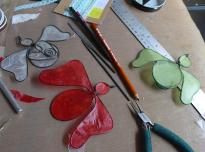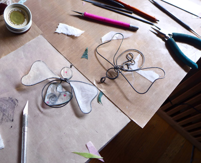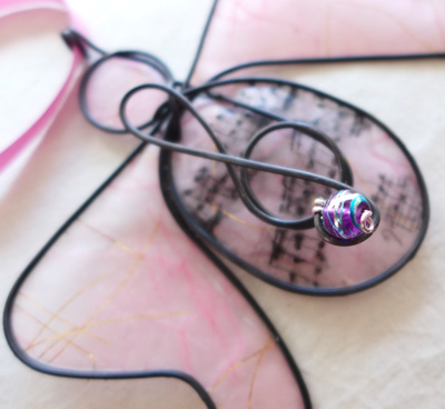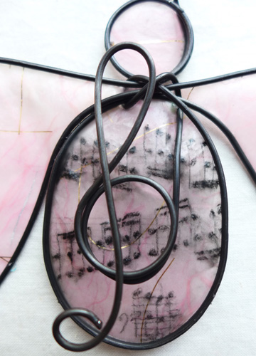 Then I set about picking out pink paper for the memorial angels. I traced a musical score onto the handmade paper.