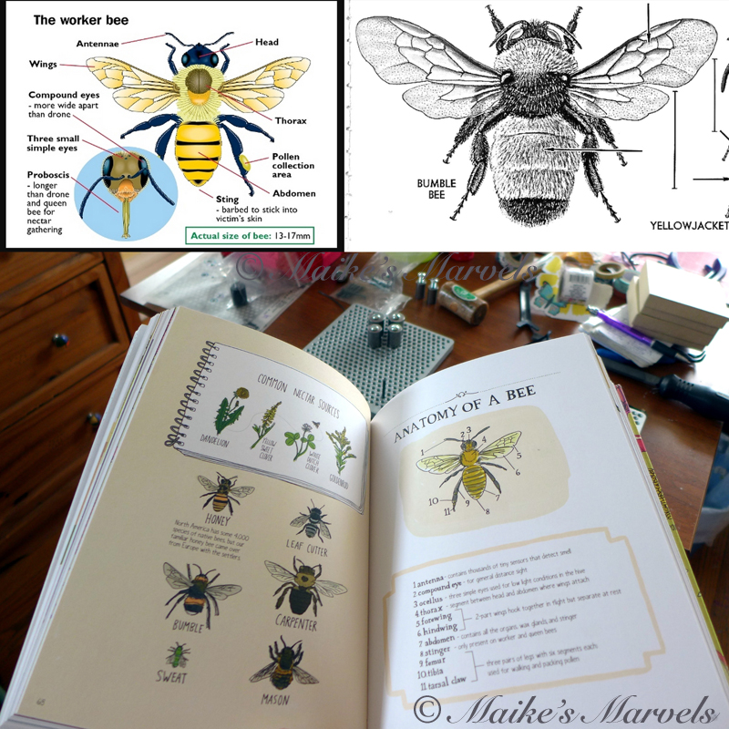 I have a variety of ideas for new creations, and last week I was nudged to create a bee for an auction item. So I reviewed Bee Anatomy and got to work.
