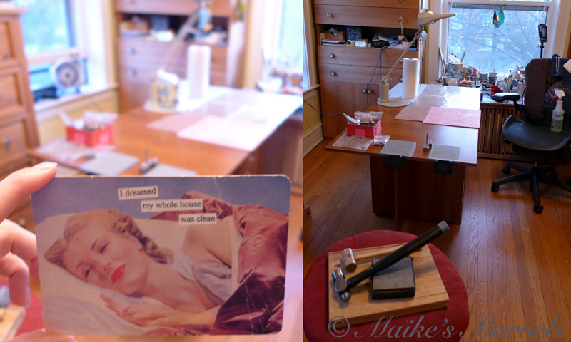 Last week I cleared off my studio table and started organizing the debris on there. Of course my sofa is covered with it now, but at least I have clear work surface for the time being.