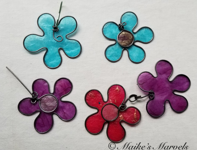 I made some flowers from one of the templates. These didn’t quite turn out as expected, but they make fun earrings nonetheless.