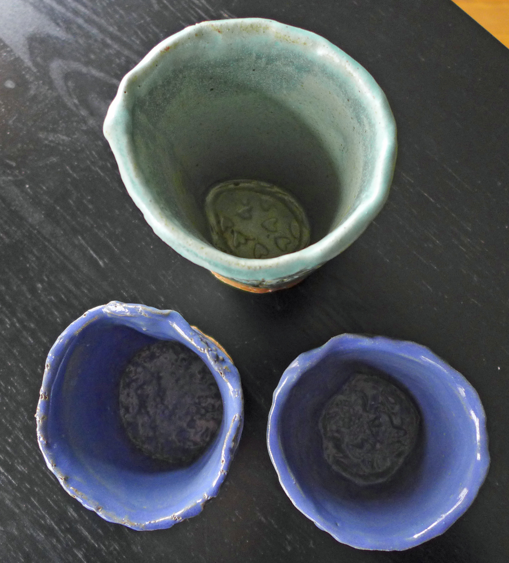 Soon we had shaped 2-3 vessels. Joanna gave us a few glaze color options that we marked on the bottom of our piece.