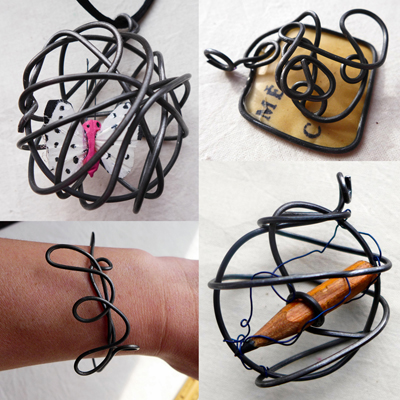 Coiled Earrings and the Flutterby wax and wire pendant perused the Encaustic Nature in Art show opening.