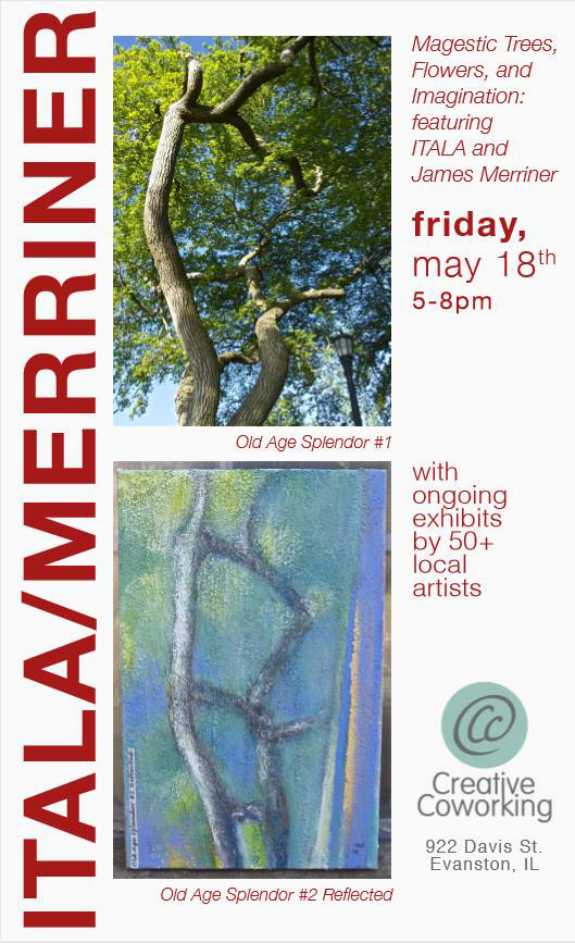 This month’s featured artists are Itala and James Merriner. I’ve admired Itala’s work before and look forward to learning about James’ work. They will be showcasing their work in the front room.