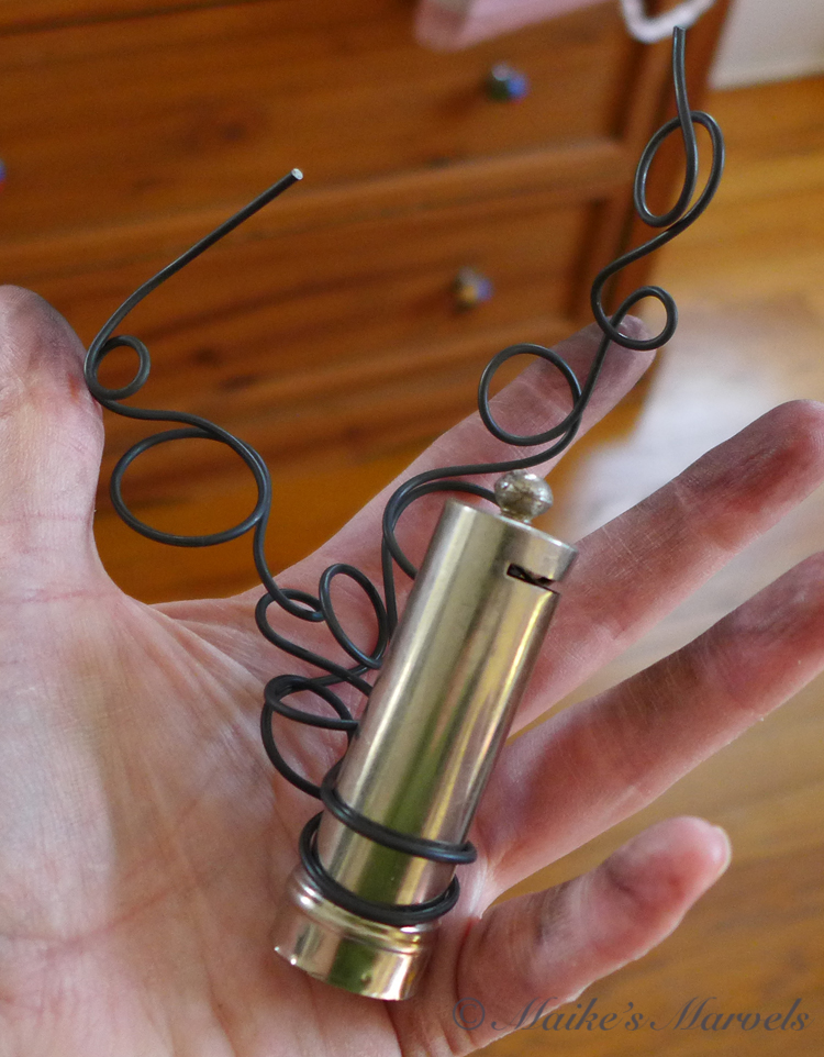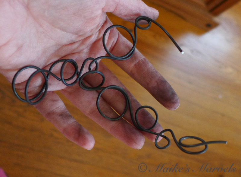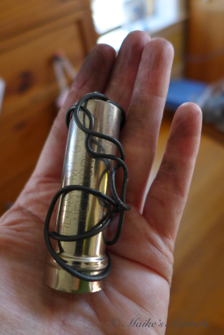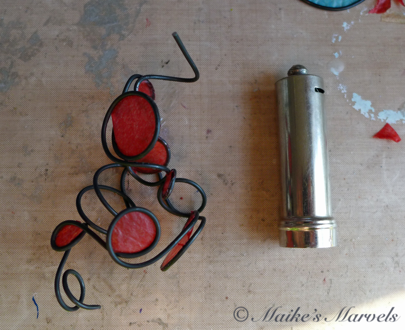 This didn’t quite work for my vision of wrapping the patternwire around my object and embellishing it with waxed paper. I think this might convert to a bracelet once I fiddle with the doubled-up idea a bit more.