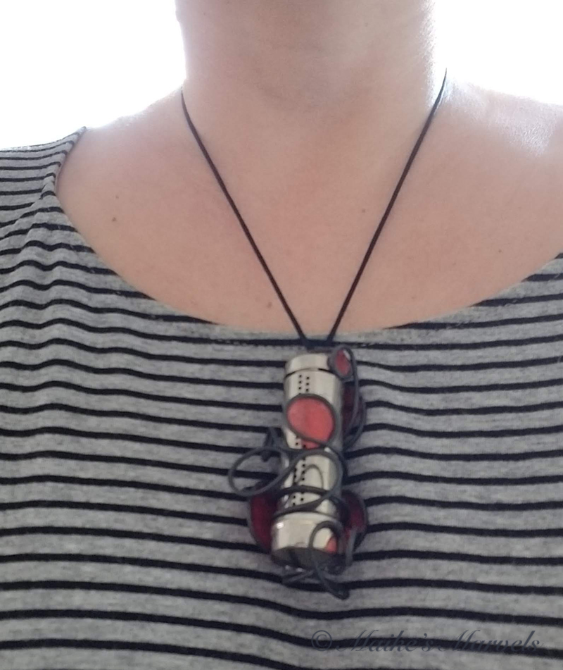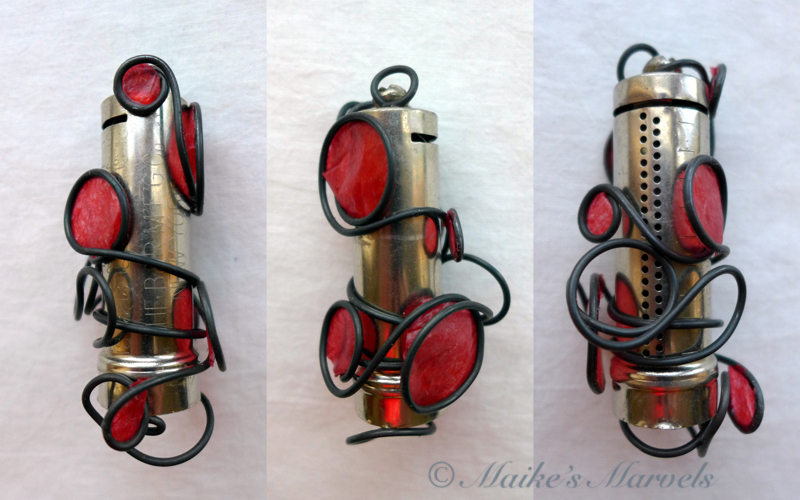 The early birds claimed the pieces they liked best, and I received what was billed in the Video as a “Match Case.” The May Challenge is: Reduce ReUse ReCycle #reducereuserecycle #ntajchallenge #reducereuserecyclentajchallenge. we were tasked to “wire your way around that wacky goodness and keep one more thing from hitting the garbage dump!” The reason it was billed a match case initially is beause it bears striking resemblance to Dawn Stone’s Found Object of the October NTAJ! Now That’s a Challenge!, where she incorporated a match case into a gorgeous pendant.
