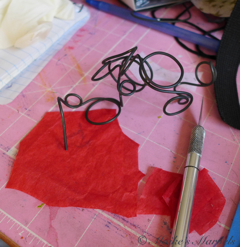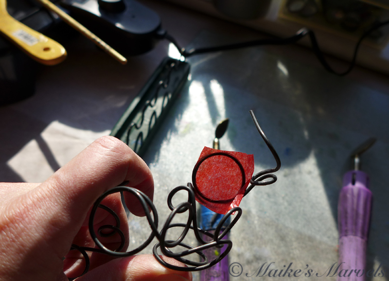 With the encaustic medium warmed up I embellished the wire in various places.
