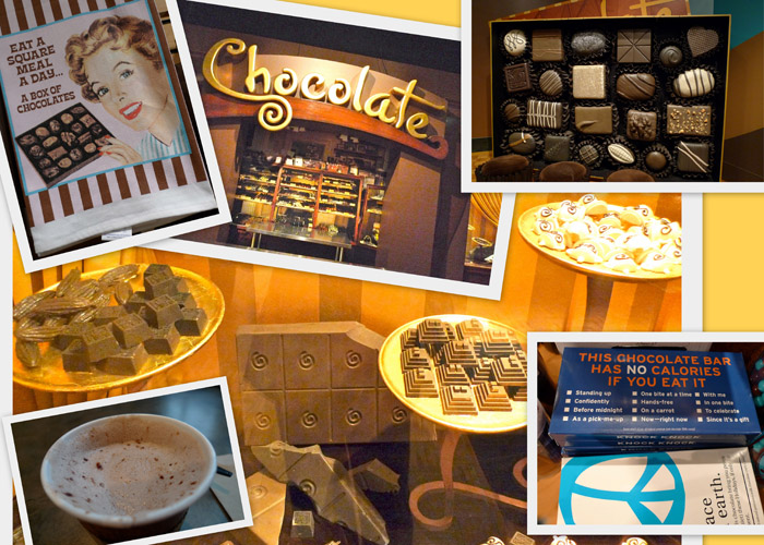 It’s been a fun and full week already. I visited the Chocolate Exhibit at the Field Museum and learned a lot more about Chocolate’s history. The Mayans used huge vessels to drink their bitter frothy cocoa from, ranging from 8 to 10 inches tall with a 6 to 8 inch diameter. And here I thought American mugs were getting larger! Photography wasn’t allowed inside but there were some fun props by the exit, and witty items in the museum shop. I treated myself to a frothy sweet cocoa for lunch.